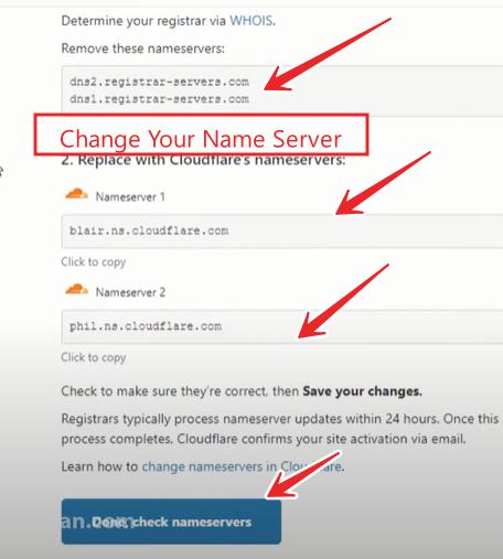 अपने डोमेन को Cloud Flare से जोड़ने के लिए, आपको इस Cloud Flare Nameserver के डोमेन नाम सर्वर विवरण का आदान-प्रदान करना होगा।