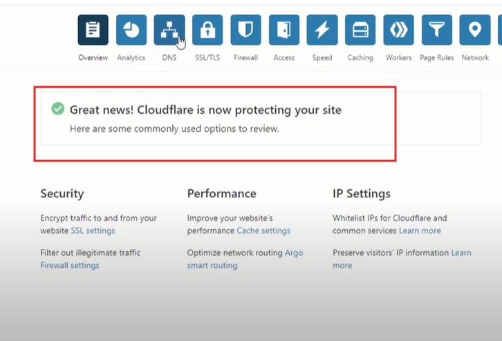थोड़ी देर बाद आपको एक संदेश मिलेगा महान समाचार क्लाउड किराया अब आपकी साइट की सुरक्षा कर रहा है।