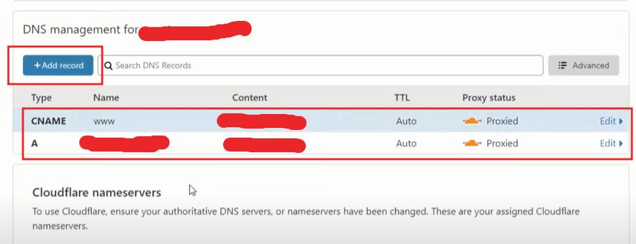 1st cloud flare में सेआप पुराने DNS रिकॉर्ड्स को Remove करें।
