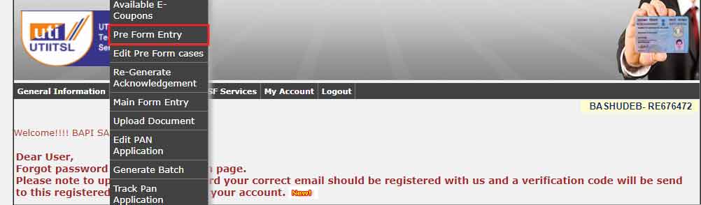 You need to visit this website(psaonline.utiitsl.com), click on Form 49A Services at the top, there you will find a form called Pre-form entry, click on it.