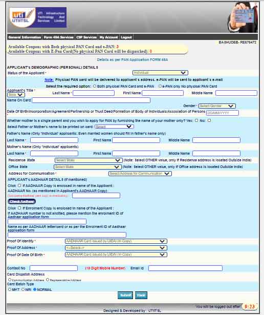 Basically, psaonline.utiitsl.com is best for agents, they can apply unlimited Pancard through this portal with cheap charges.