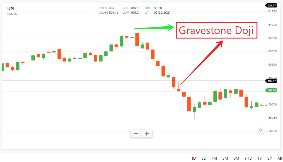 Use of Doji – Above I explained Shadow. If Any Stock’s technical Chart Gravestone Doji creates, than high chance stock will fall, the stock trend is bearish. Because Gravestone Doji push this stock downside.