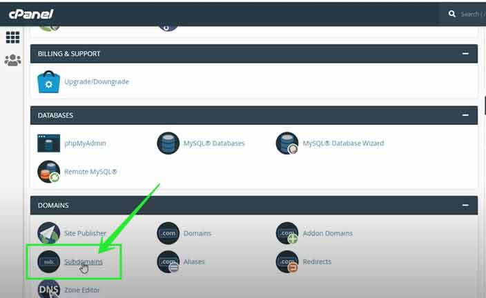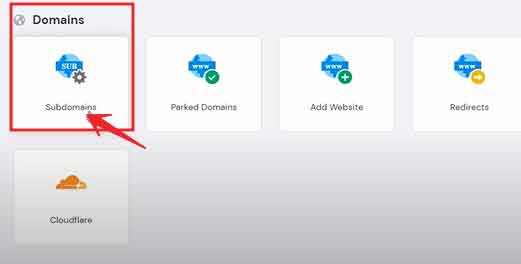 2nd Step – Domains सेक्शन में जाएं और Sub domain ऑप्शन पर क्लिक करें।
