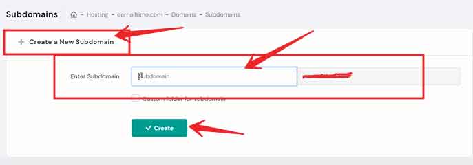 अब सबडोमेन नाम दर्ज करें और बनाएं। बेहतर है कि अपने Website Niche के रूप में Subdomain नाम चुनें।