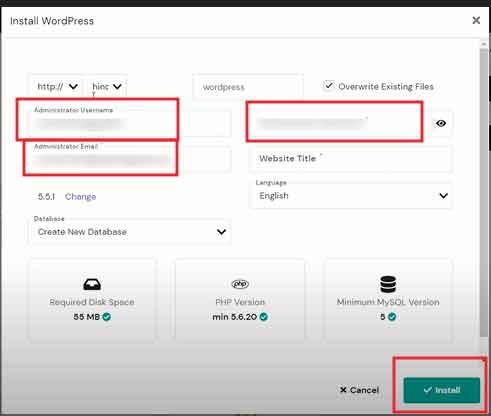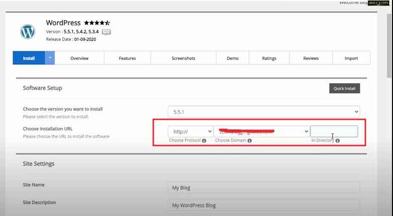 अब अगला पेज ओपन होगा। वहां उपडोमेन चुनें जिसे आपने हाल ही में बनाया है। अब Administrator Username और Administrator Password टाइप करें।