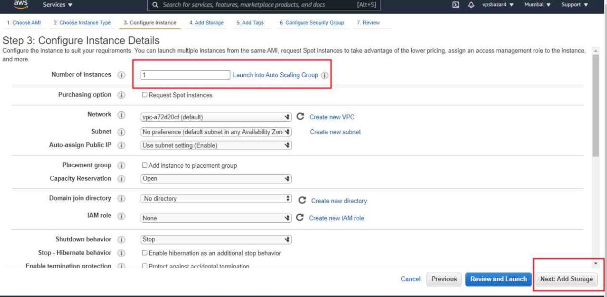 अगले Configure Instance Details पर क्लिक करें।