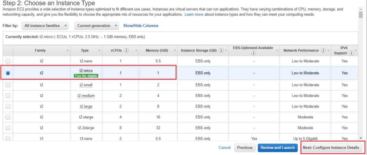 t2.micro Free Tier का चयन करें।