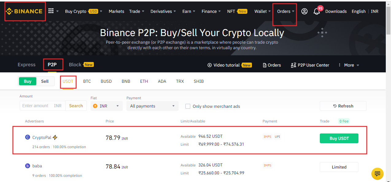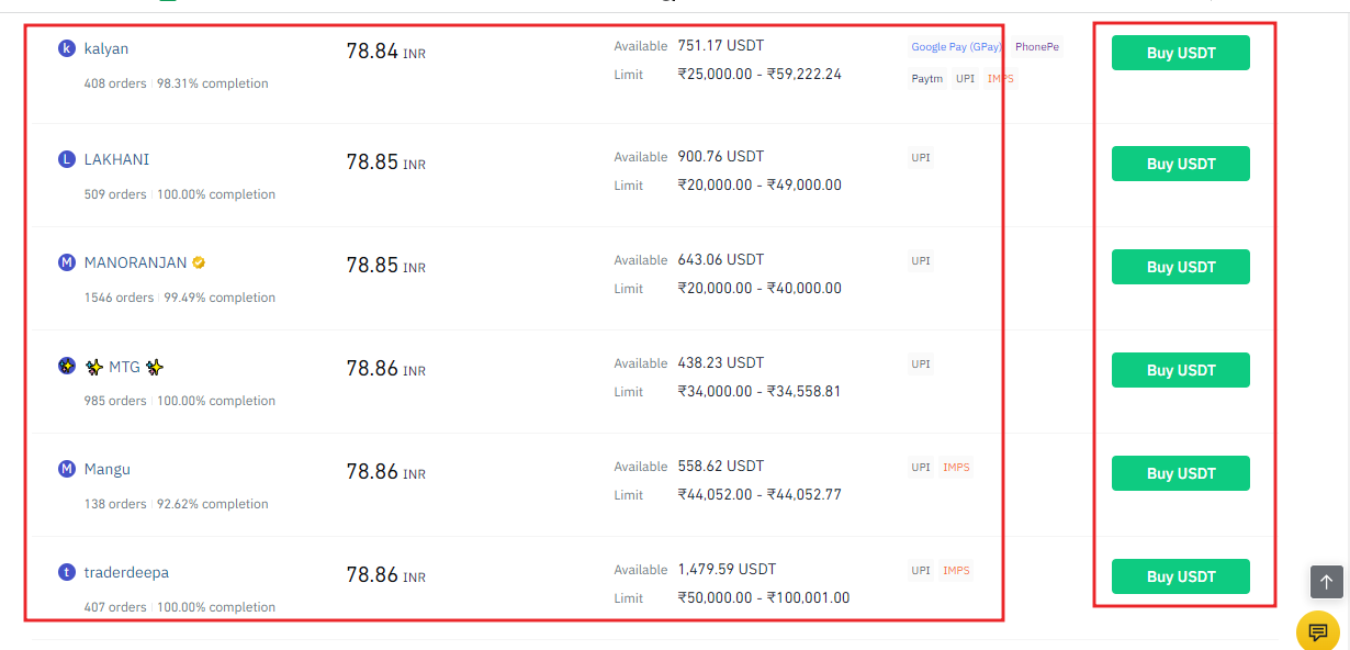 यहां पर आपको बहुत सारे seller मिल जाएंगे, जो USDT Sell करना चाहते हैं।