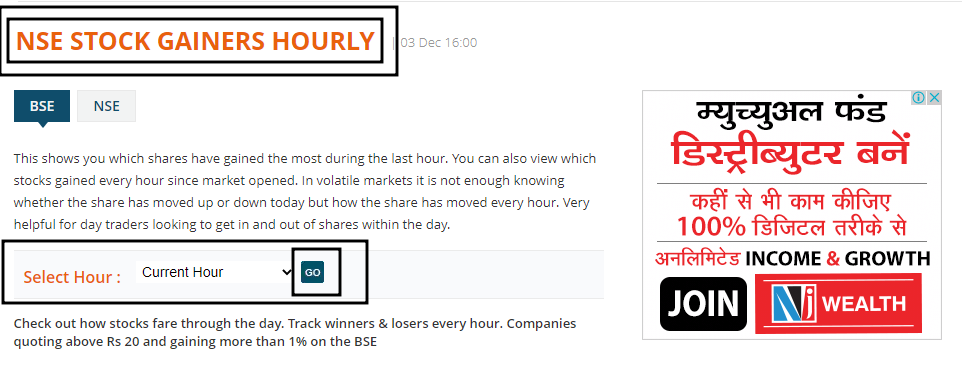Let me tell you, you will get a list of hourly gainers stock in the money control site. Of course in this list you will find the names of shares of both NSE and BSE